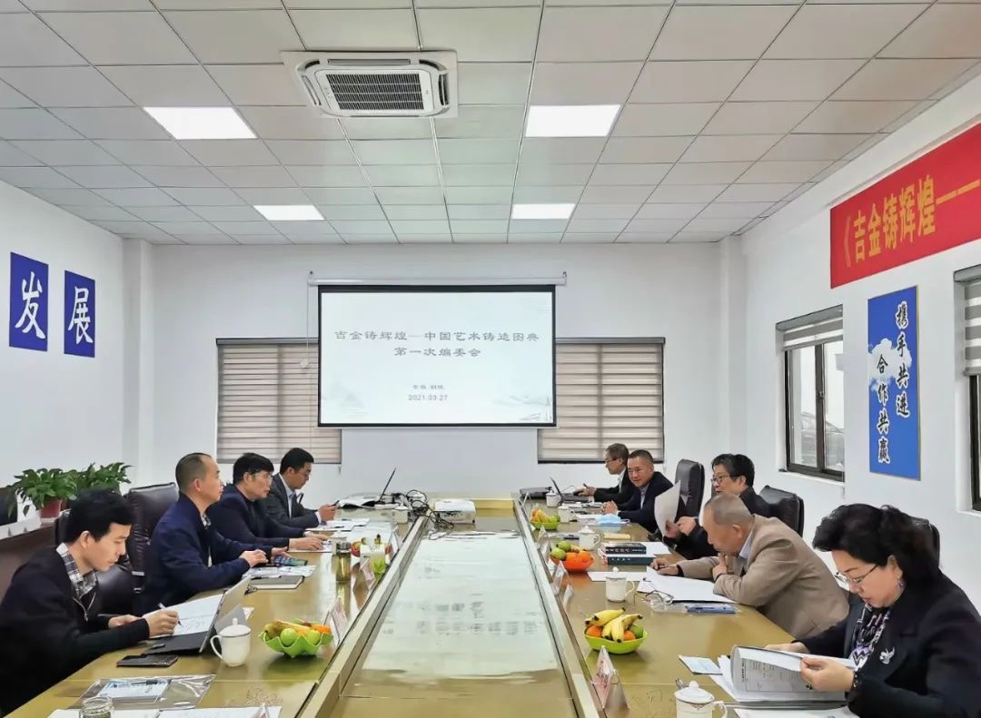 3月26日—3月27日,原中國(guó)傳統(tǒng)工藝研究會(huì)理事長(zhǎng)、中國(guó)非物質(zhì)文化遺產(chǎn)專家委員會(huì)委員華覺(jué)明先生、上海博物館研究員譚德睿、中國(guó)科學(xué)技術(shù)史學(xué)會(huì)傳統(tǒng)工藝研究會(huì)秘書長(zhǎng)王希吟、中國(guó)鑄造學(xué)會(huì)秘書長(zhǎng)劉鴻超、《鑄造》雜志社原總編輯葛晨光、廣州美術(shù)學(xué)院副教授賴錫鴻、中國(guó)科技出版社編輯辦公室主任王曉義等一行來(lái)公司舉行由中國(guó)科學(xué)技術(shù)史學(xué)會(huì)傳統(tǒng)工藝研究會(huì)、中國(guó)鑄造學(xué)會(huì)、銅陵銅官府文化創(chuàng)意股份公司擬與中國(guó)科學(xué)技術(shù)出版社聯(lián)合出版中英文版著作《吉金鑄輝煌---古今中國(guó)藝術(shù)鑄造圖典》的第一次編委會(huì)會(huì)議。
