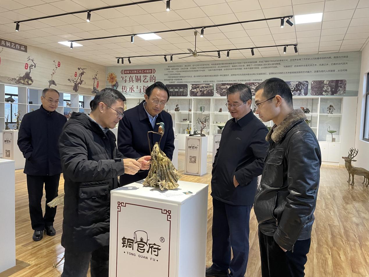 12月12日,黃岡市人大常委會(huì)黨組副書記、副主任詹旺民率隊(duì)來(lái)我公司考察,市人大常委會(huì)黨組副書記、副主任汪宜武陪同。公司負(fù)責(zé)人郭飛向大家詳細(xì)介紹了公司文旅融合發(fā)展、銅文化資源挖掘、銅文化建設(shè)等工作情況。詹旺民副主任充分肯定了銅官府在壯大銅文化產(chǎn)業(yè)方面所做的工作和取得的成效,并希望進(jìn)一步加強(qiáng)兩地文化的互動(dòng)交流、互學(xué)互鑒,共同促進(jìn)經(jīng)濟(jì)社會(huì)發(fā)展。